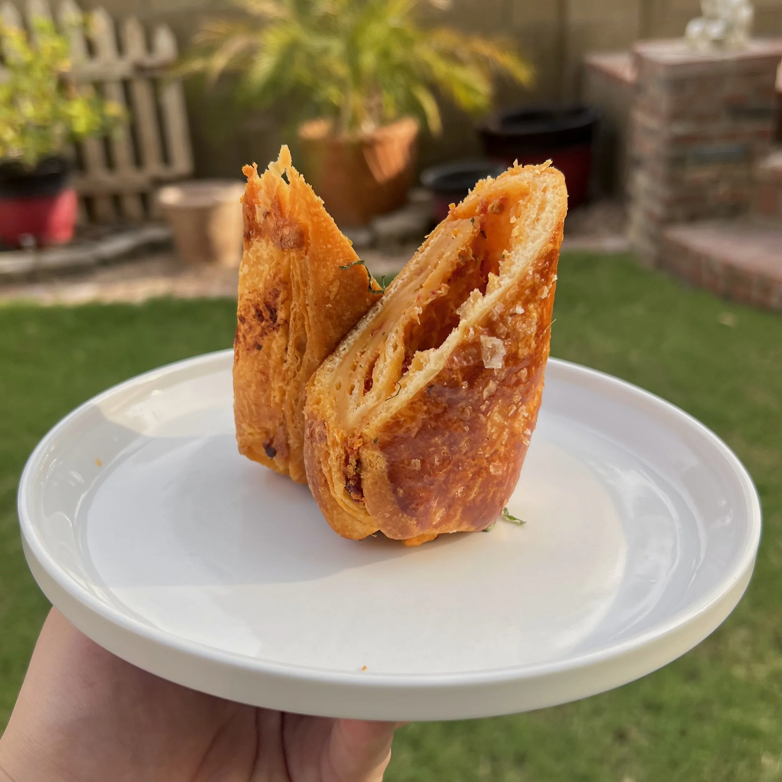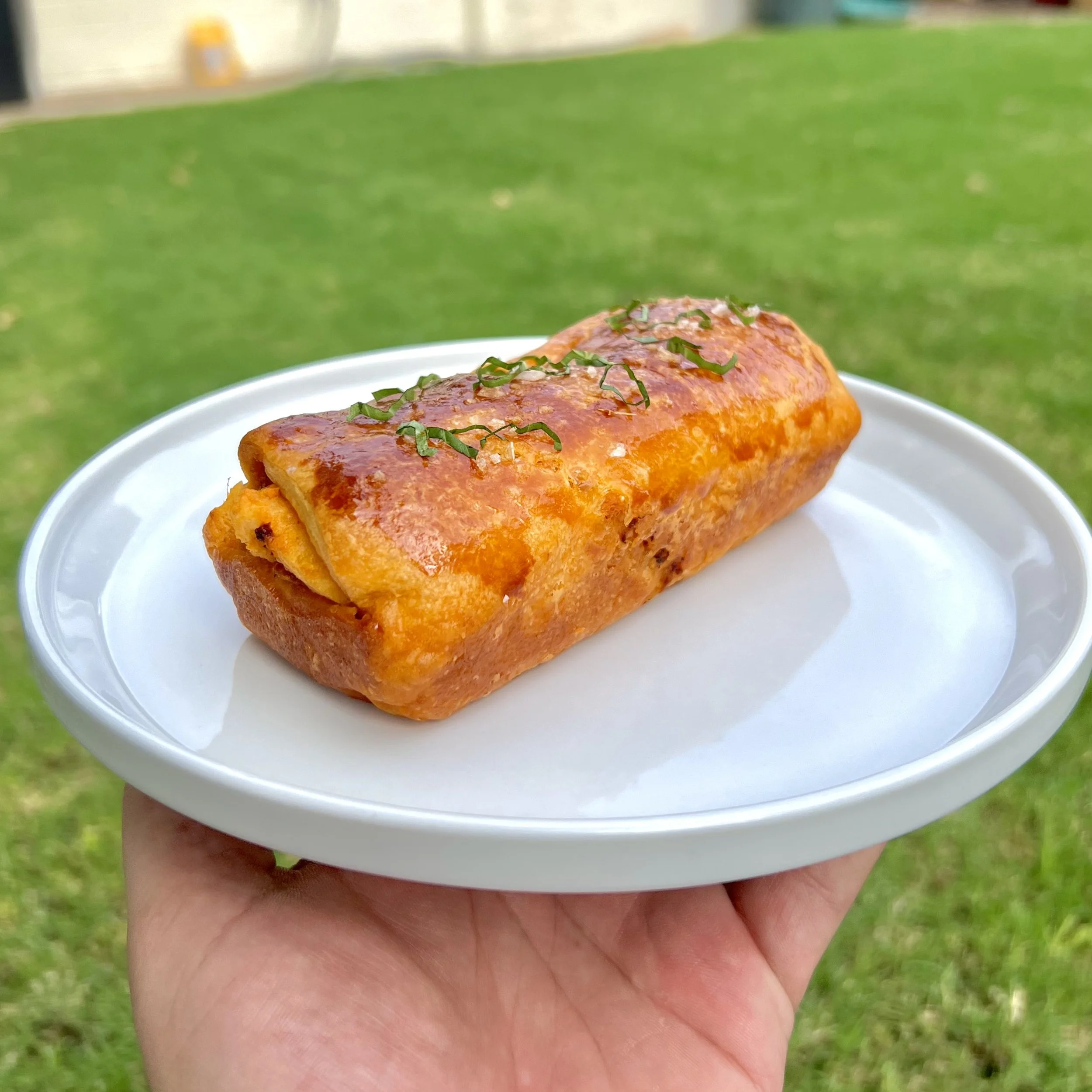 Final product should be golden brown with a crunchy top. Once out of the oven you can brush with additional garlic butter and sprinkle flaky salt on top. The inside of the dough will be hollow. Do not panic, this is correct. The middle will also look like uncooked dough, it is not. The inside will look uncooked when it is actually just saturated with the compound butter that was placed inside.
